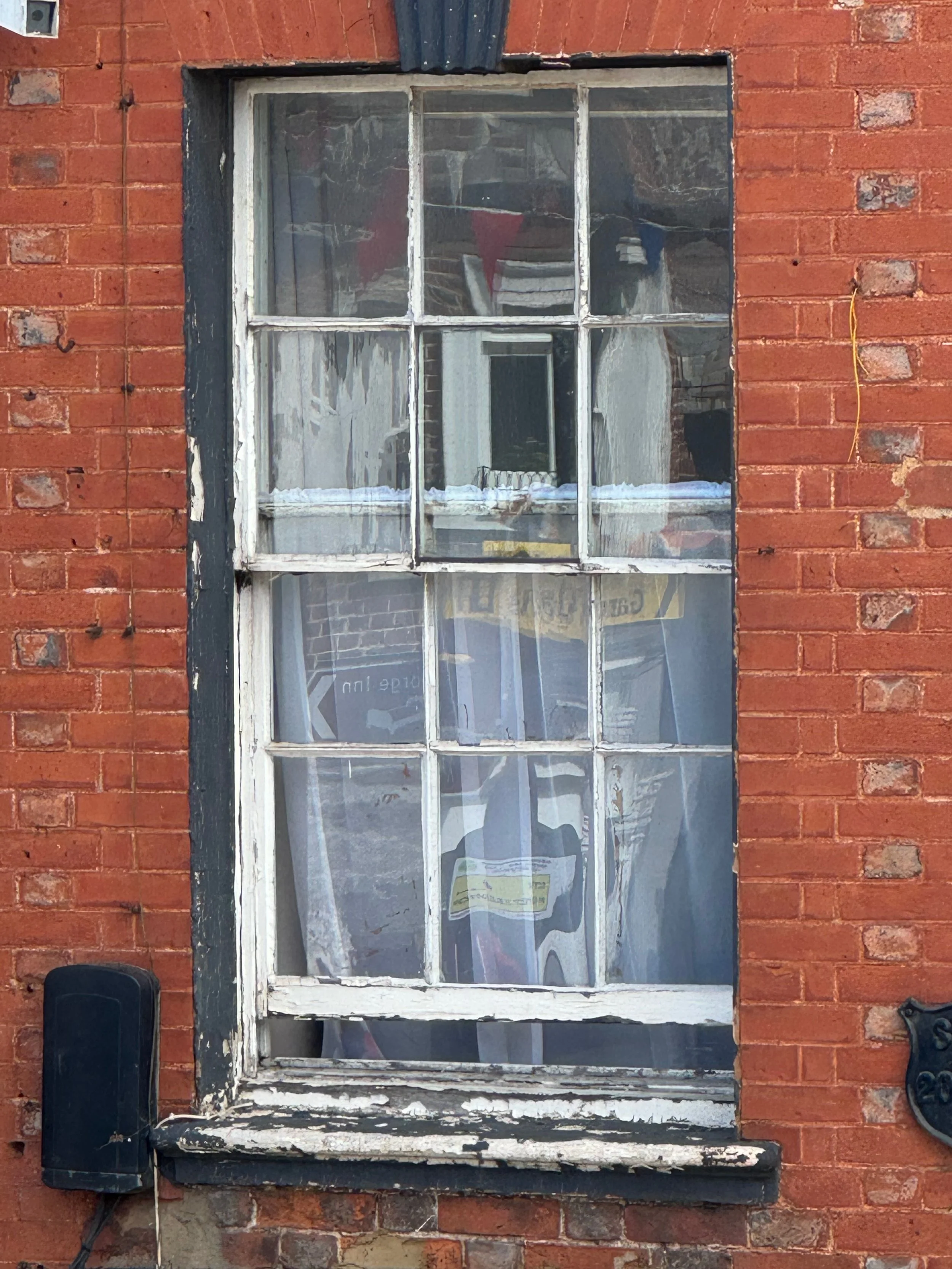 In September 2024, scaffolding went up and the transformation began. Just a week later, a grab lorry struck the scaffold, damaging both it and the brickwork. Thankfully, no one was hurt, but the site had to be made safe, and works paused for a month while assessments took place. By November, the scaffold came down just in time for Ampthill’s Christmas light switch-on, revealing the fully restored windows, with only the ground floor works remaining.